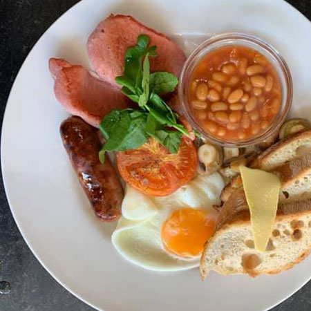 We can’t do food swaps. However, we can do additions. Avocado with Poached Egg Ciabatta 8.50 Bacon and Poached Egg Ciabatta 8.50 Smoked Salmon and Poached Egg Ciabatta 9.50 Sausage, Bacon and Toast 8.50 Stables Full English 9.50 Sausage, bacon, tomato, mushroom, poached egg and toast